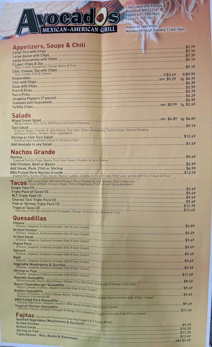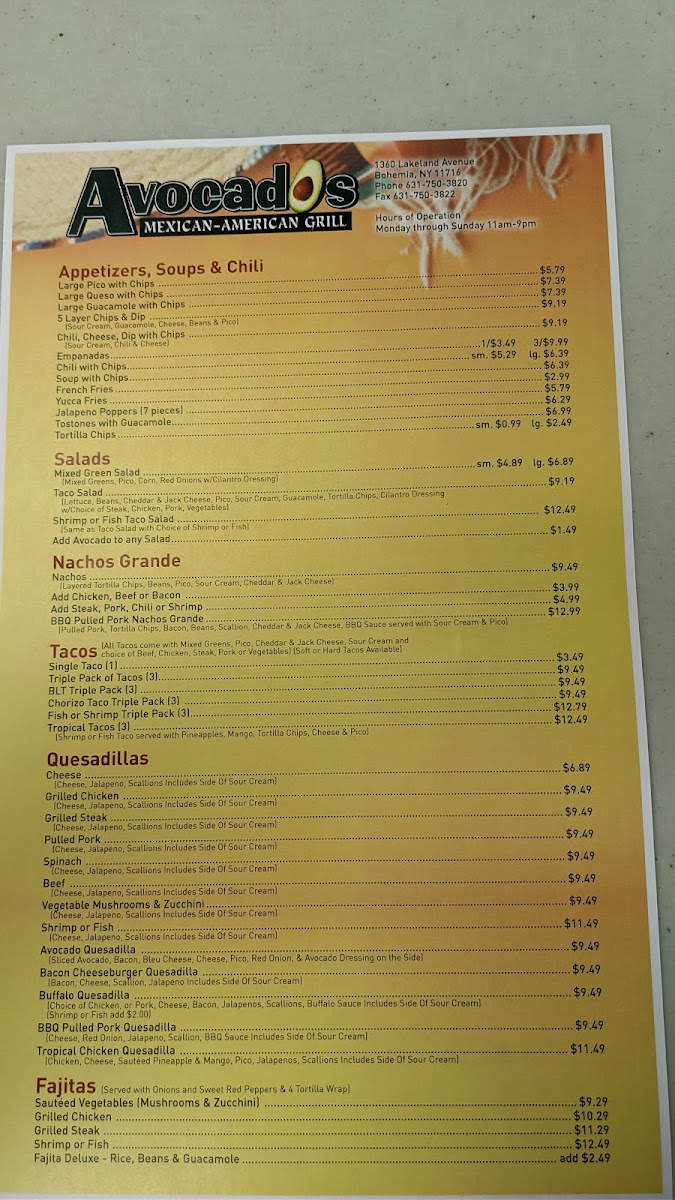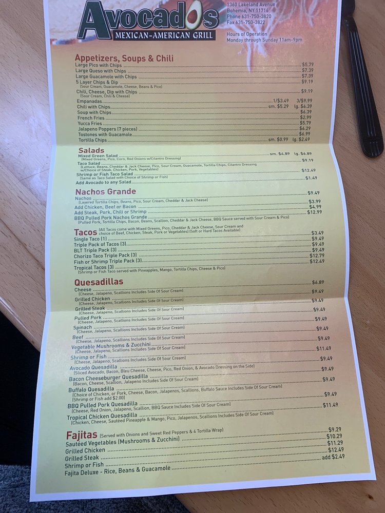 Avocados Mexican-American Grill (Bohemia Ny) menu gallery
